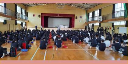 8時25分の予鈴が鳴り終わるまでに、体育館に集合して、集会を行います。