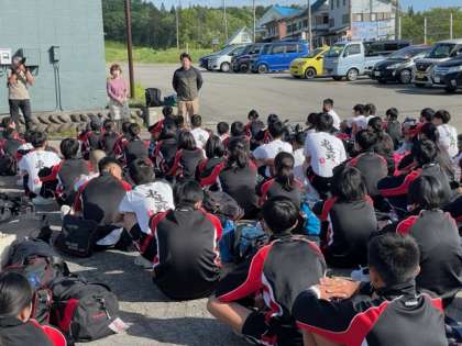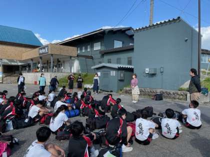 予定より早く、宿舎のあるひるがのピクニックガーデンに到着。入館式を行い、3カ所に分かれての宿泊です。