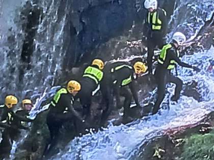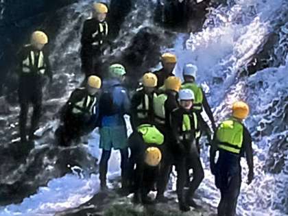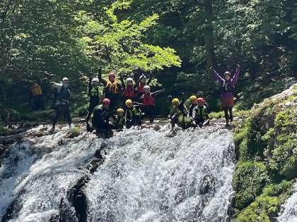 高さ15メートルの滝を登る、足場の悪い岩を流れの中歩いていく、自然の中でたくさん経験しました!