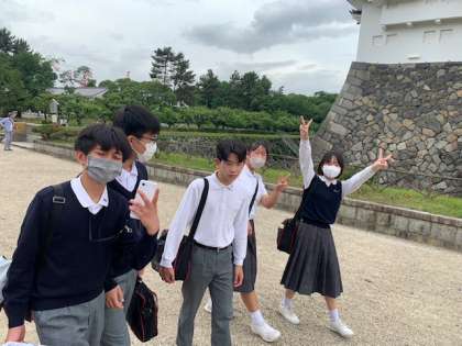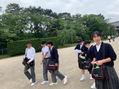 名古屋城、クイズに答えながら班で協力して散策していきます!