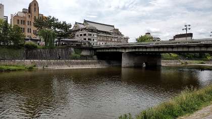 クラス写真は四条大橋の河川敷で撮りました。天候もよく、穏やかな風が吹いています。