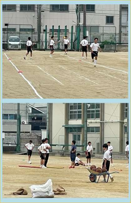 8日の運動会を控え、体育の授業はパートに分かれての練習です。