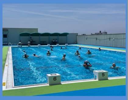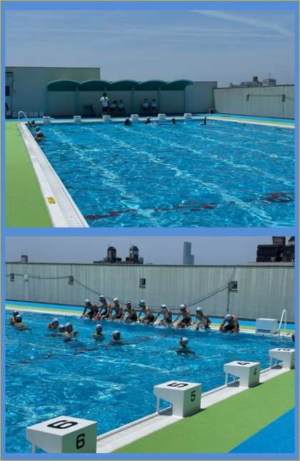 昨年度にプール改装工事が終わり、リニューアルしたプールで体育授業が始まっています。プール浴槽内塗り替えとプールサイド工事です。足裏の暑さも感じなくなり、生徒のみんなも喜んでいます。