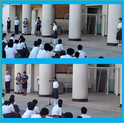 夏休みが始まります。計画を立てて勉強しましょう。また、部活動もありますが水分補給をしっかりとって体調管理に気をつけましょう。