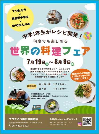 1年生が取り組んできた「海鮮居酒屋てつたろう」での料理が決まり、いよいよ本日からお店で提供されます。
