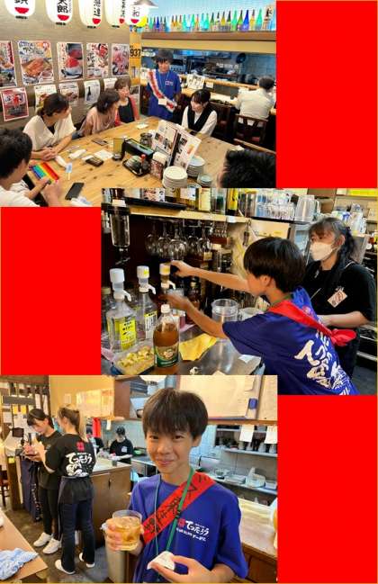 18時過ぎから体験を開始して、最初は緊張しており接客の声も小さく、ドリンク作りも手こずっていましたが、30分ほど経つとお客様とコミュニケーションを上手にとることができ、自分たちが提案した料理の注文をたくさんいただきました。