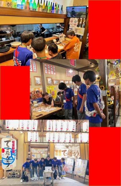 19日1年生教員2名と生徒5名で「海鮮居酒屋てつたろう」に職場体験に行きました。17時に大阪メトロ小路駅に集合をして、中崎町駅まで電車で行きました。