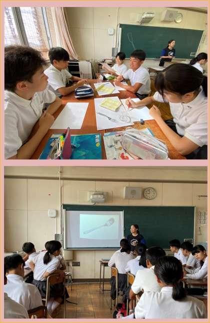 1時間目、2年1組で尾上先生(美術)の研究授業でした。
