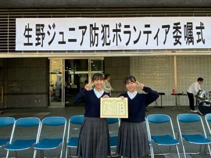 「生野区ジュニア防犯ボランティア」の委嘱式がありました。
