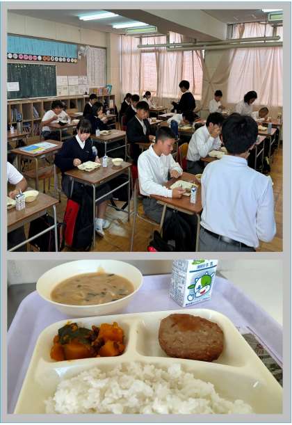 今日はハンバーグやみそ汁といっしょに「かぼちゃのいとこ煮」が出ました。