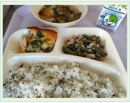 さて、今日の給食の「千草焼き」には何が入っていたでしょうか。