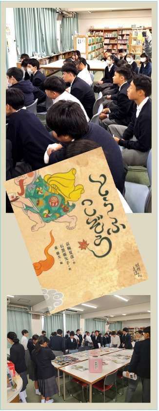 図書室の机には、学校司書さんが並べた多数の本の表紙もありました。