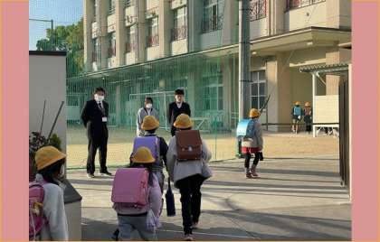 校区連携小学校の小路小学校・東中川小学校で朝の挨拶運動活動を行いました。