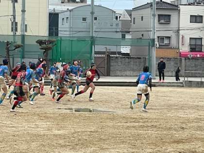 雨上がりの後、グランド状態が悪い中でしたが116対0(前半73-0後半43-0)で勝利しました。