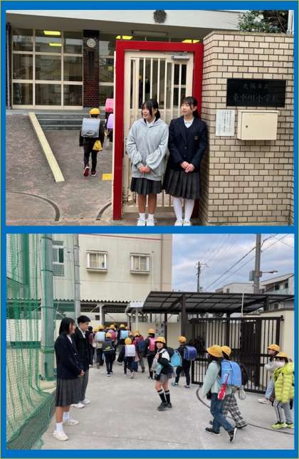 連携小学校である小路小学校、東中川小学校の登校時間に正門で生徒会役員が立って、あいさつ活動をしました。