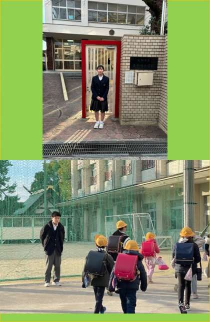 東中川小学校に森さん、小路小学校に向井さんが出向き、正門であいさつ活動を行いました。 (担当:水田)