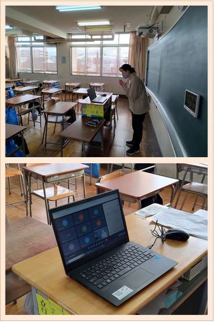 今日まで、学級休業中の1年3組はリモートで朝の学活をしています。