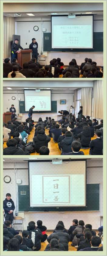 今日伝えた職場三原則を守りながら、毎日一つでも人のためになるような行動をしましょう。