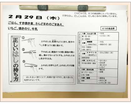 今日の給食カレンダーは「おはしの持ち方」でした。