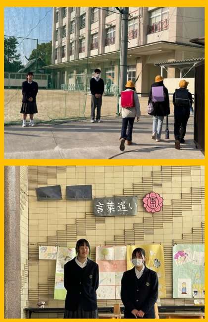 小路小学校、東中川小路へ生徒会役員が出向き、正門に立ってあいさつ活動を行いました。 (担当:水田)
