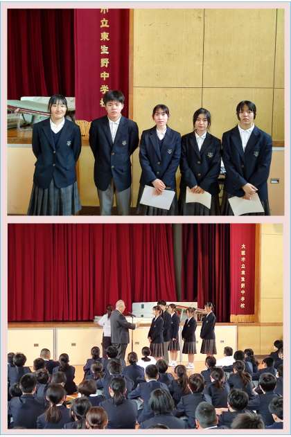 今年も東生野中学校の生徒を支える活躍、頑張ってください。