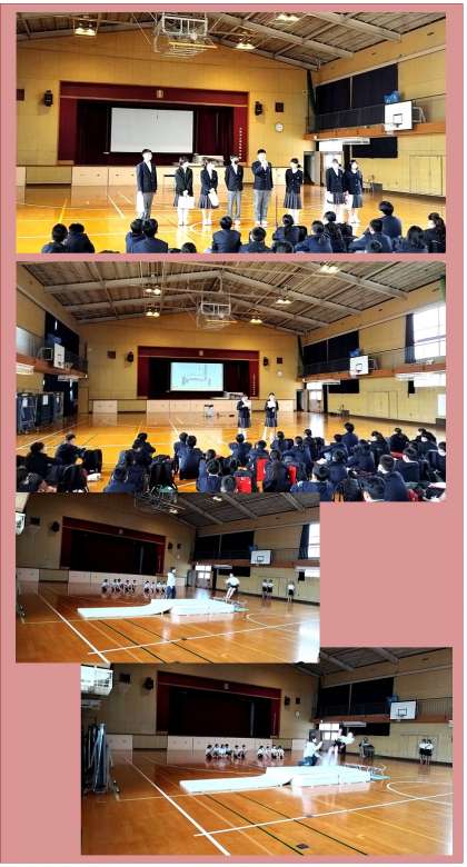 イラスト文芸部とコーラス部の発表と、体操部の演技の様子です。