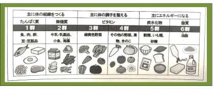 給食には6つの栄養群がバランスよく含まれています。