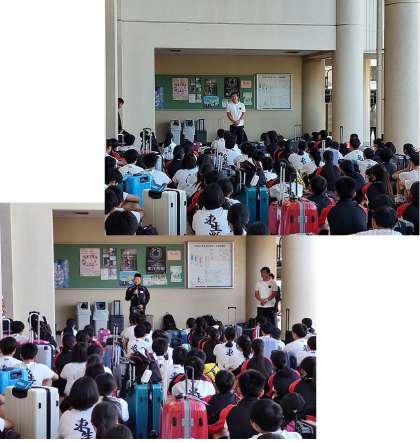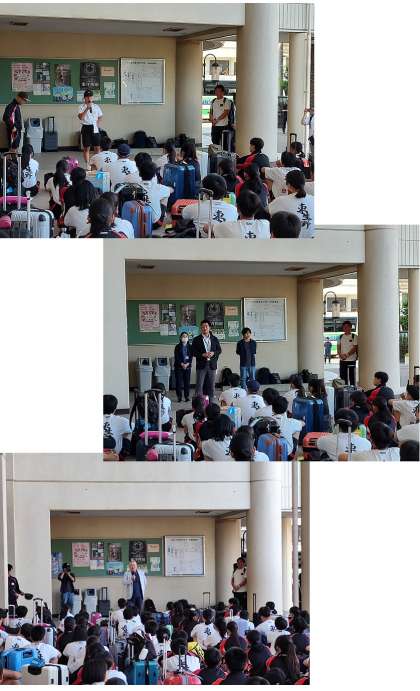 修学旅行、出発式です。