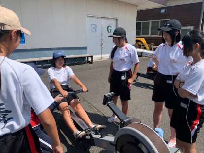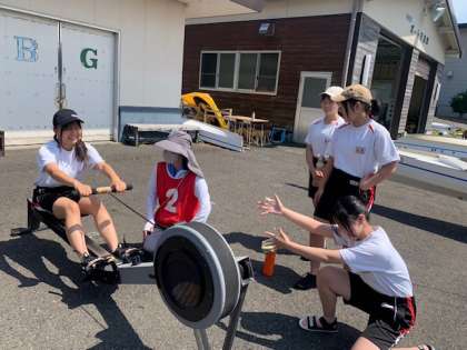実際にトレーニングマシーンで漕ぐ練習をします!