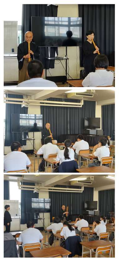 生で聞く尺八の音色に生徒らはじっと耳を傾けていました。