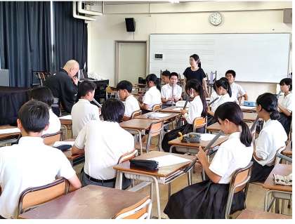今日も、尺八奏者の石川先生に来ていただき、2年生の生徒が音楽の授業を受けています。