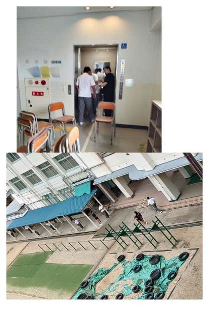 ラグビー部の生徒たちのおかげで、大量の机いすの移動が進みます。