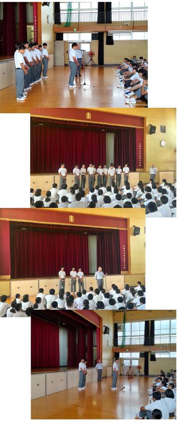 外の野球で活躍している3人の生徒の壮行と激励、校長先生に奨められて、決意のスピーチが行われました。