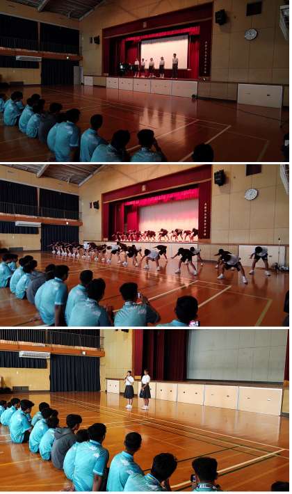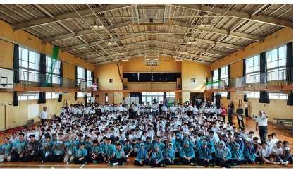 体育館で、お互いの学校がプレゼンテーションしあいながら交流を深めました。