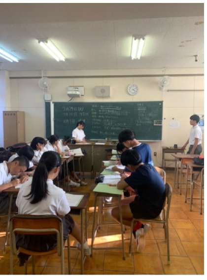 生徒会役員と各委員会の代表で、前期の反省点と改善方法について話し合いをしました。10月15日から始まる後期では2年生が中心となって委員会活動をすすめていくことになります。