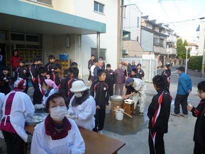 恒例の地域(七北町会)との「ふれあい学習」で餅つきを行いました。
