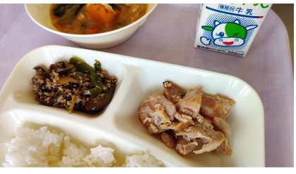 ・なすのそぼろ炒め、牛乳 です。