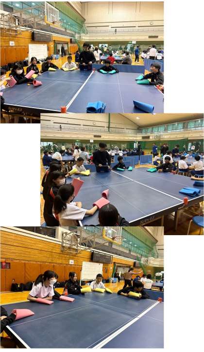 卓球台の上で、ピンポン玉を自分のエリアに落とされないように打ち合っています。