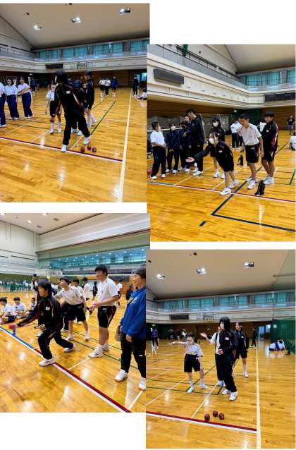 2チームに分かれ、ポイントに自分のチームの色のボールを投げます。ポイントに近い方が勝ちです。