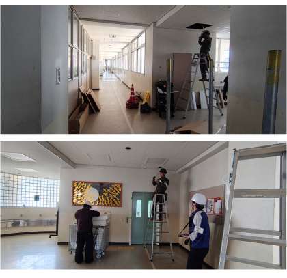 校内の全照明をLEDへと切り替える工事が始まりました。