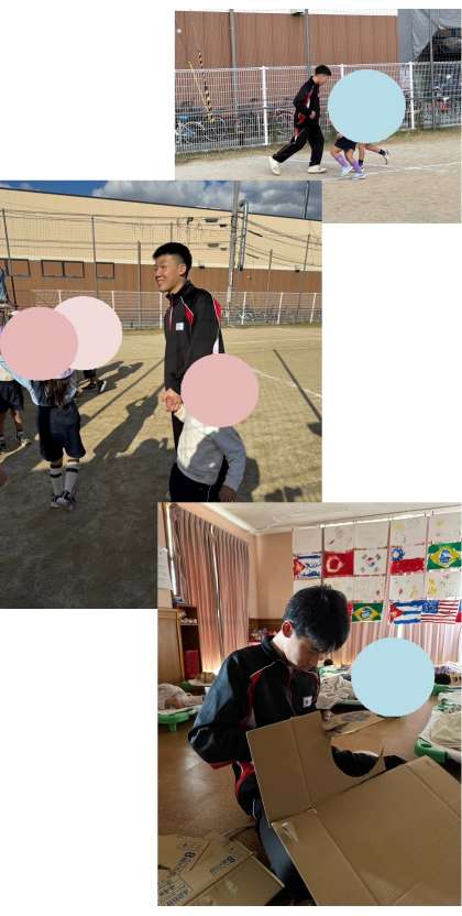 元気いっぱいの子どもたちと一緒に鬼ごっこなどをしていました。 また、2歳児の子どもたちの寝かしつけが難しく、大変だと言っていました。 寝ている間は、工作のお手伝いをしていました。