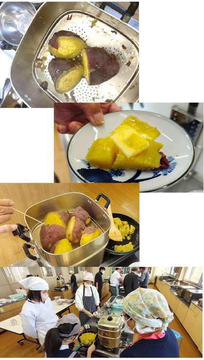 調理実習の材料は、校内で育てて収穫した「さつまいも」です。スイートポテトとふかし芋を作りました。