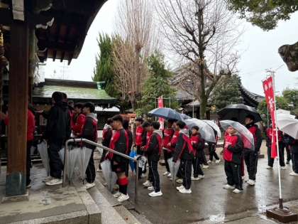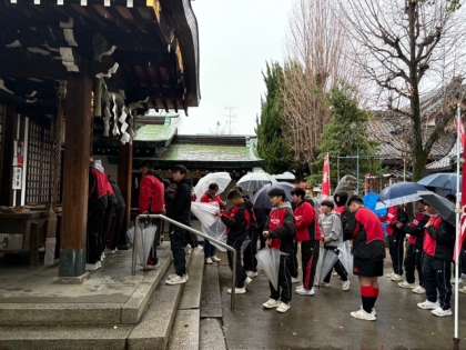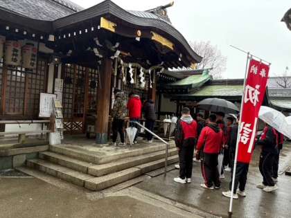 ラグビー部は新年恒例、清見原神社へ初詣。