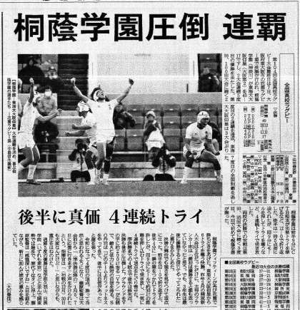 卒業生の丹羽雄丸(にわたける)くん、桐蔭学園の選手として花園へ出場し、見事チームを連覇に導きました。