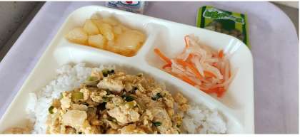 紅白なますは、だいこんの白色と、にんじんの赤色で、水引を意味しの給食です。