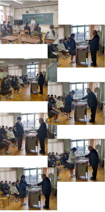 卒部式で校長先生から修了証を手渡されたあと、カルタ大会をしました。