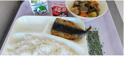 今日の給食では、節分の行事献立として「いわしのしょうがじょうゆかけ」と「いり大豆」が出ました。