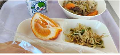 ポトフとは、肉や野菜、香草などを煮込んだフランスの家庭料理の一つです。フランスでは煮込んだ肉、野菜をスープと別々に盛り付けて食べます。給食では、牛肉やウインナー、
