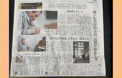 本校夜間学級を卒業した生徒さんの記事が昨日の産経新聞夕刊に掲載されました。