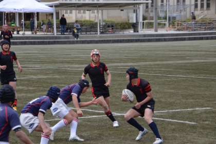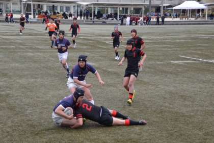 天理集中ゲーム最終日、天理中学校と対戦しました。新チーム結成時に対戦した時は、完敗しましたが、今回は0対5、1トライ奪われて負けはしましたが、大健闘でした。